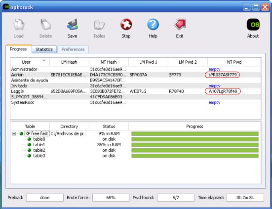 There are few things to note here. The first is that if you intend to crack LM hashes, you are required to enable either the XP free small or the XP free fast depending on your RAM size. The other thing is that if you are cracking NT hashes you have to install and enable the Vista free table set.