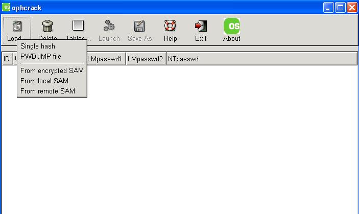 To begin, click the load button. There are to options here: either you enter the hash directly or dump the SAM from a remote computer. In the first option, the hash can be imported from a text file that contains the hashes that you have created with pwdump or fdgdump. In the second option of dumping harsh from a remote computer, it is compulsory that you log into the remote computer as administrator