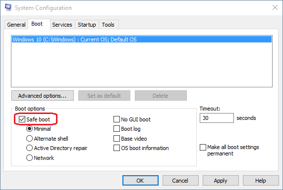 - Step 4: Under Boot Options, tick the "Safe boot" option and then click on OK button. It will prompt you to restart the computer so that the changes will be applied. Please reboot the machine and PC will start in Safe mode.