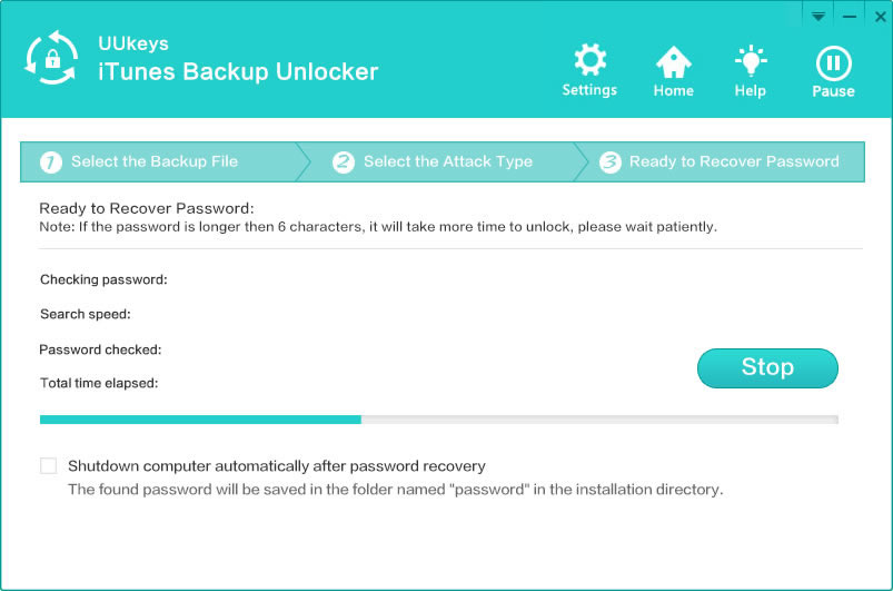 To make sure that your password can be recovered accurately, UUkeys iTunes Password Unlocker makes use of multiple types of attacks in the recovery process. For instance, brute-force attack is a technique, wherein all types of character combinations are tried; so small passwords can be easily recovered with it. Another type of attack is brute-force with mask attack, which will help with saving the recovery time if you partially remembered the password. The other two types of attacks are dictionary attack and smart attack. With these technologies, this tool will help you with the best recovery of the backup password.