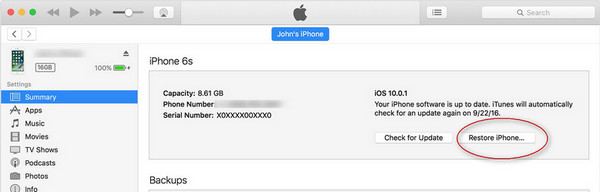 Step 4: Click on it and select click "Restore" confirm the operation. Then iTunes starts to reset the iPhone to factory resetting and install the latest software on it.