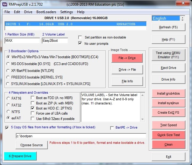 RMPrepUSB is an ultra fast and multi-function USB burning tool developed by an small team. It is completely free software and has many features that other USB burning tool failed to offer, such as UEFI and GPT support. Those are crucial functions for Windows 10 based computers as UEFI is the default BIOS to load Windows OS. It is one of the most effective mechanisms to replace the legacy boot.