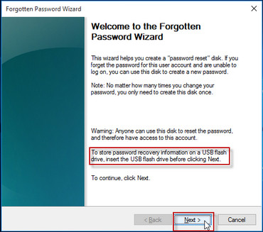 - Step 2: Click "Next " and insert the pre-created password reset disk into the computer.